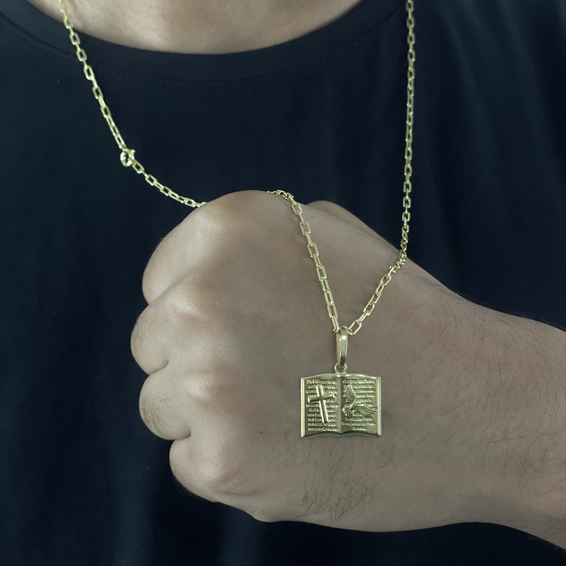 Kit Tijolinho de Quina 2mm Fecho Boia + Pingente Bíblia Pomba