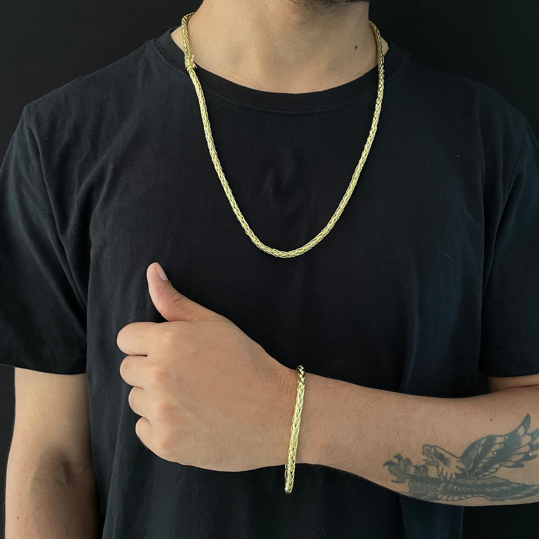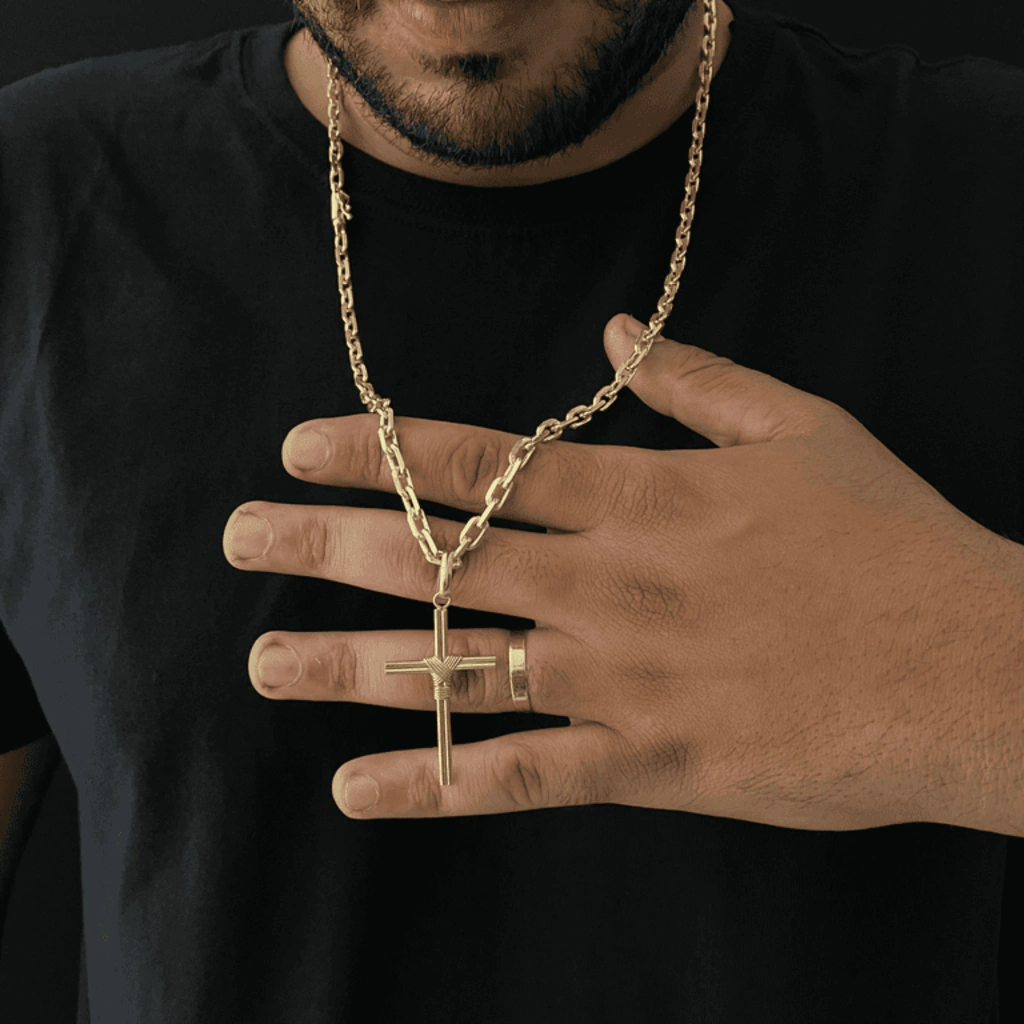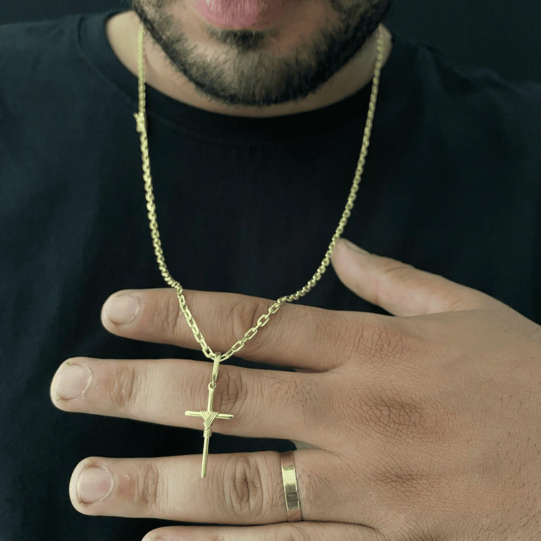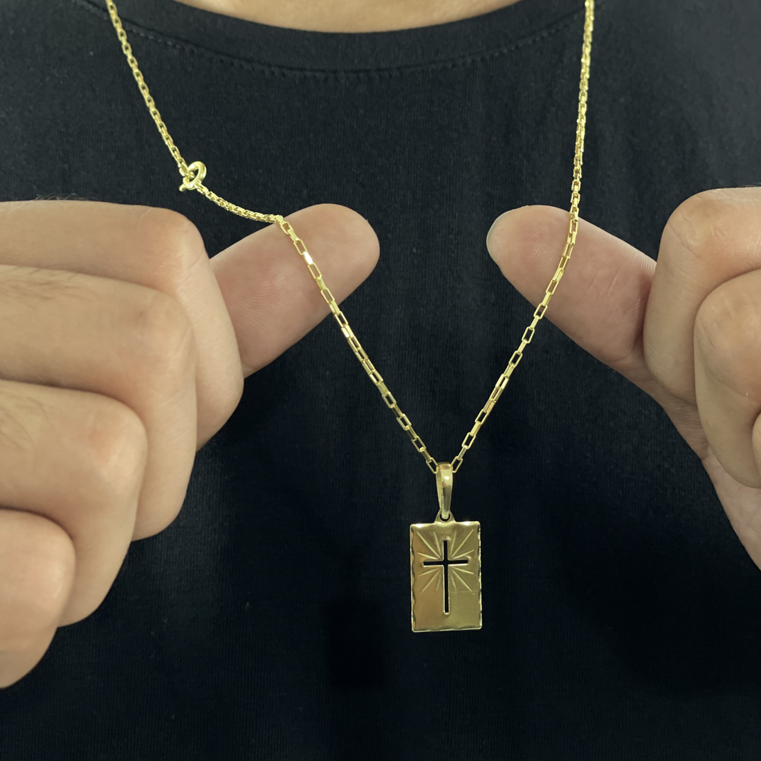 Kit Corrente Cadeado de Quina 5mm + Pingente Cruz Dupla Amarrada