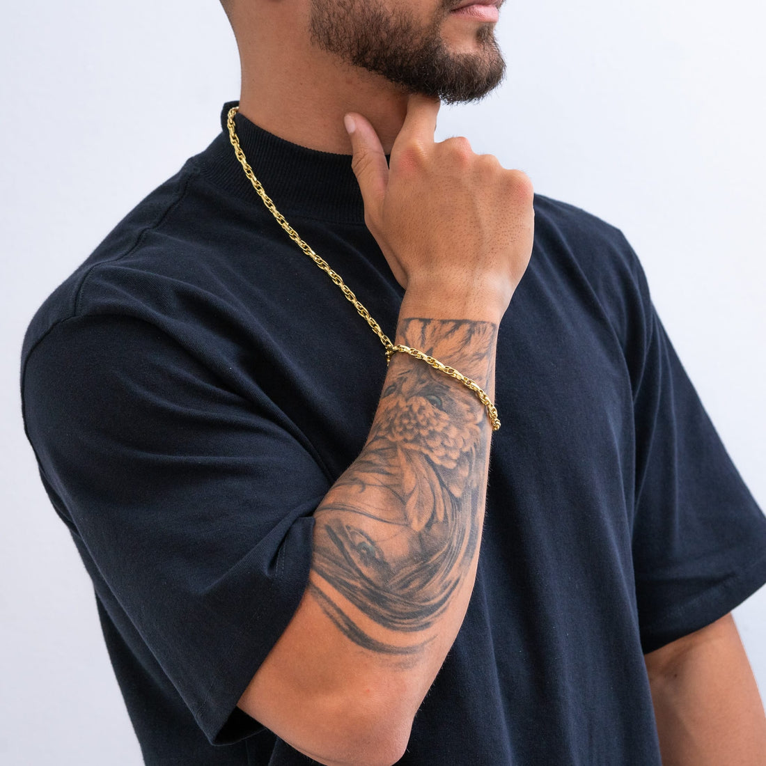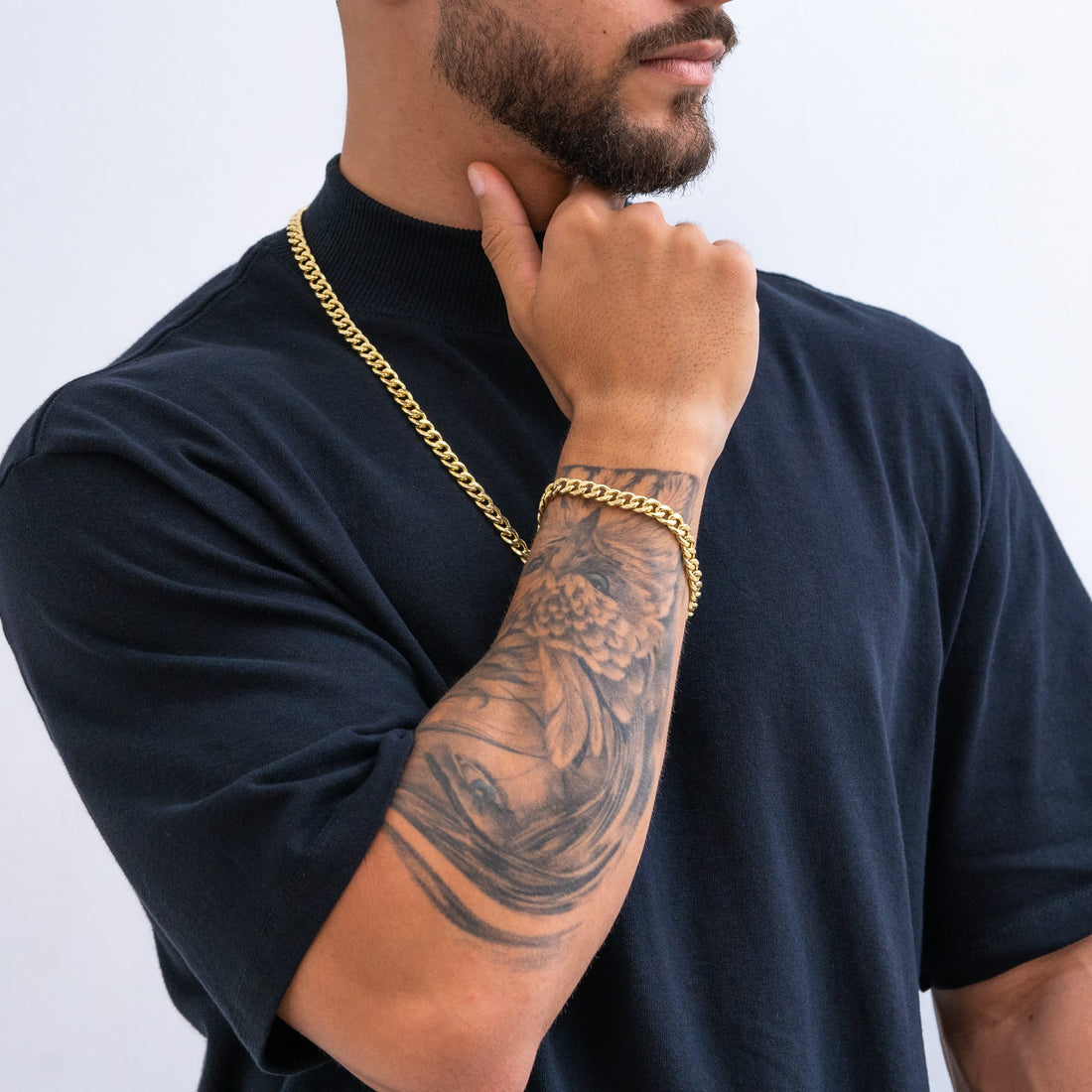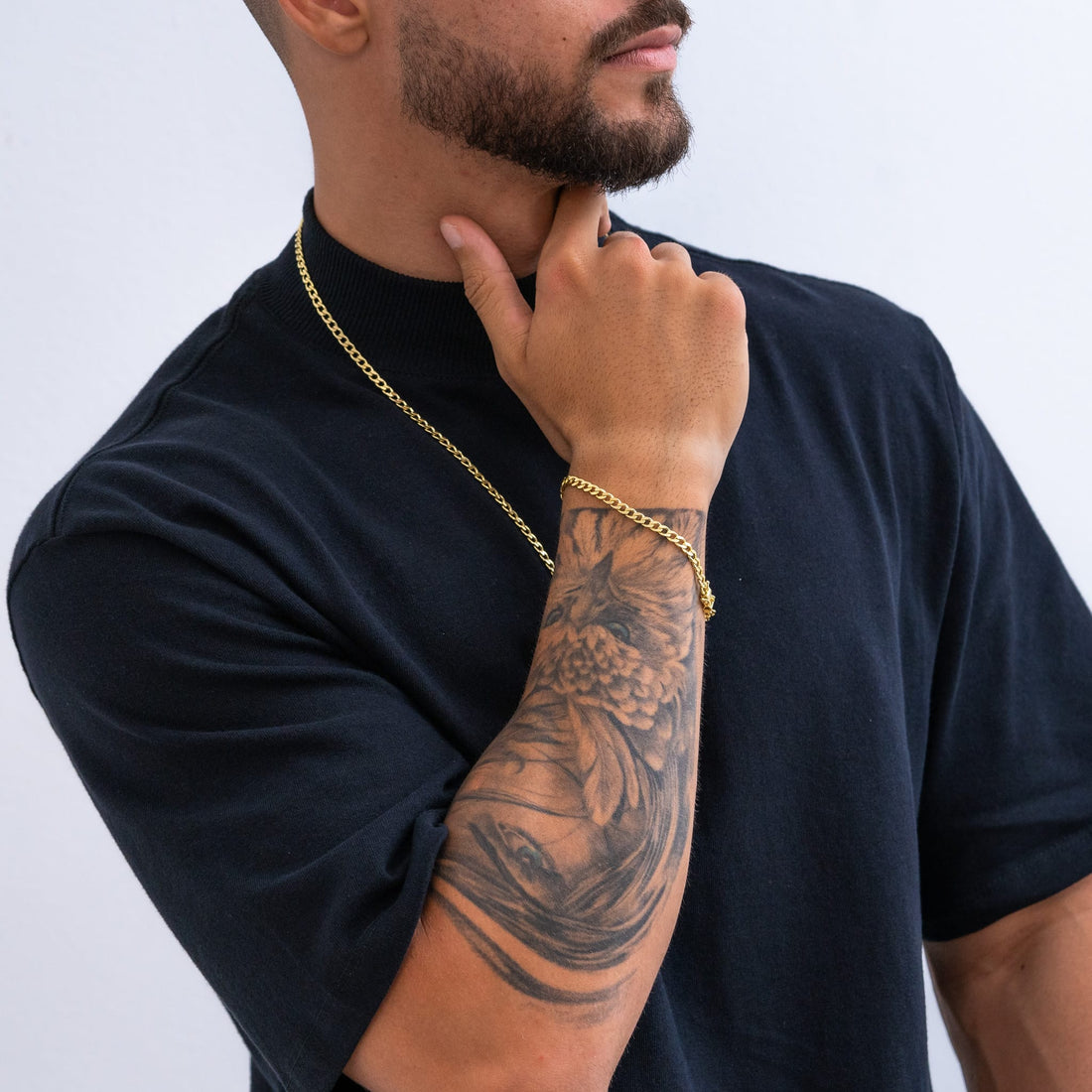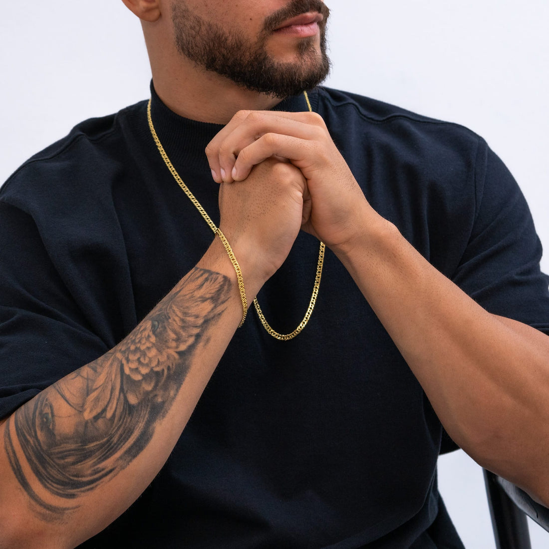 Kit Corrente Cadeado de Quina 5mm + Pingente Cruz Dupla Amarrada