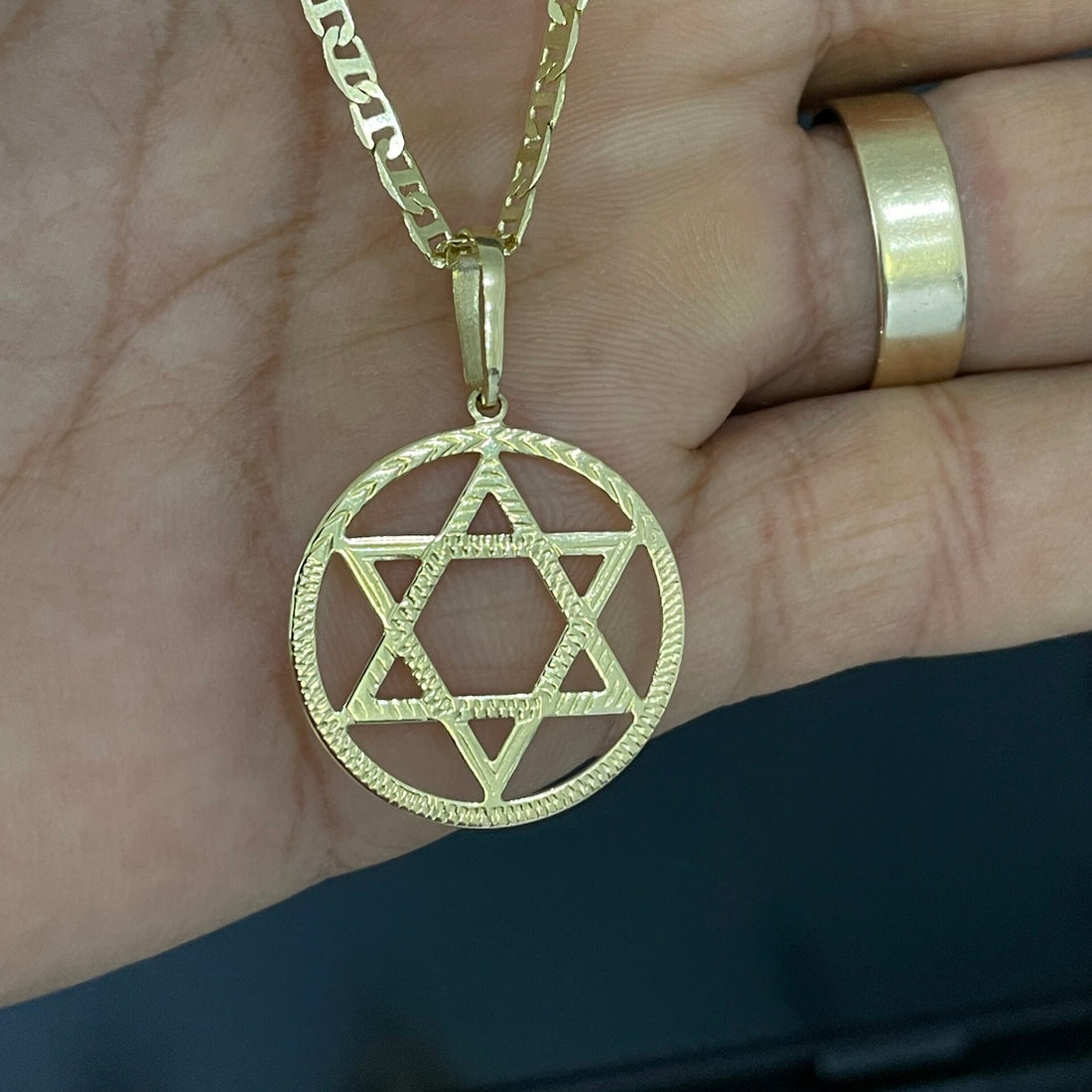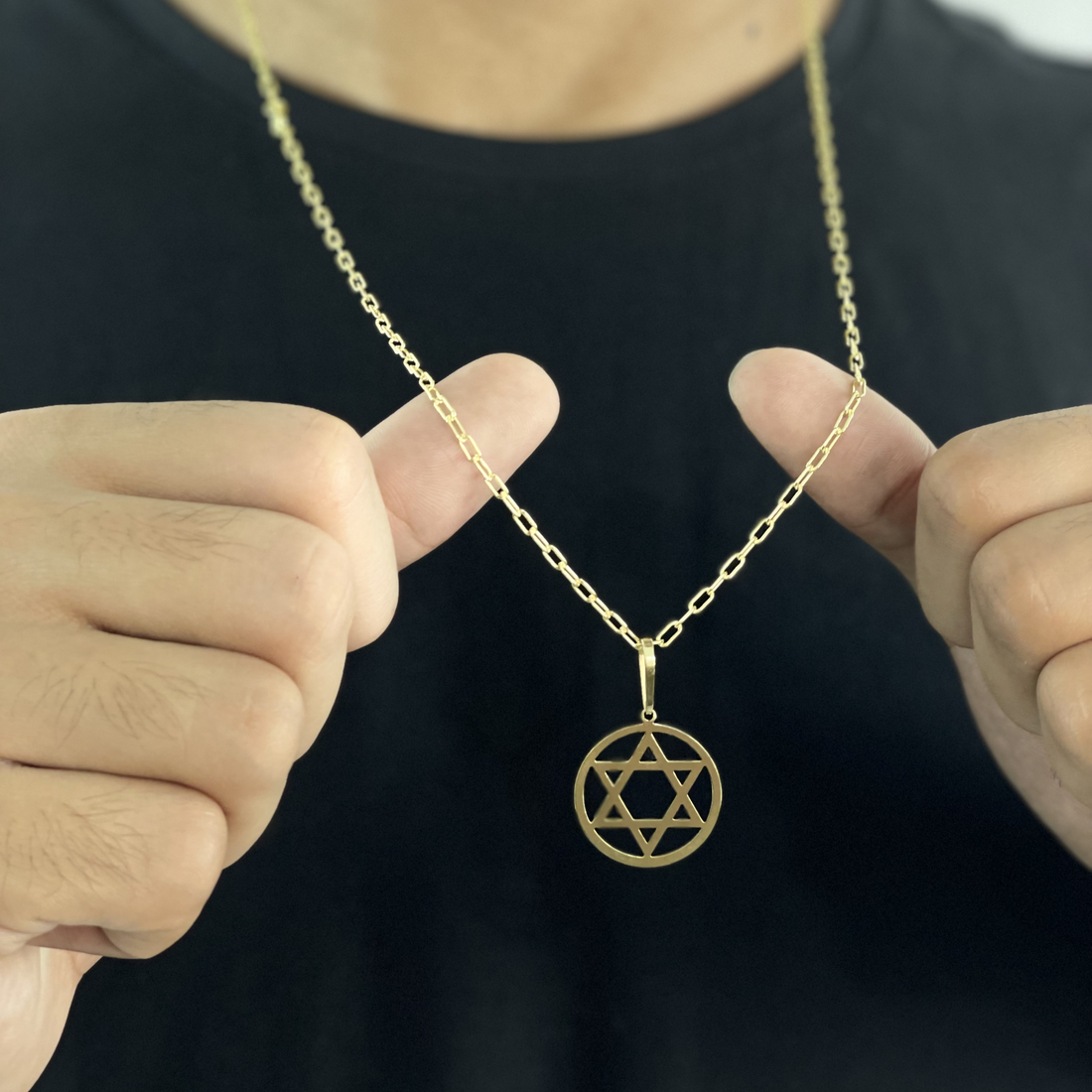 Kit Corrente Piastrine 2,5mm com Pingente Estrela de Davi 100% Moeda Antiga