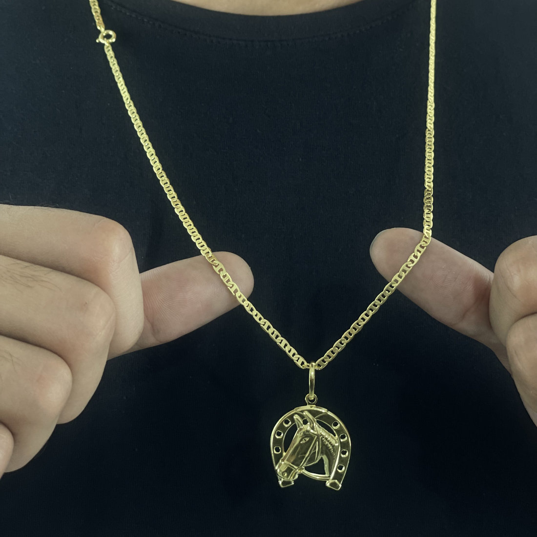 Kit Corrente Cadeado de Quina 2,5mm + Pingente Cruz Amarrada
