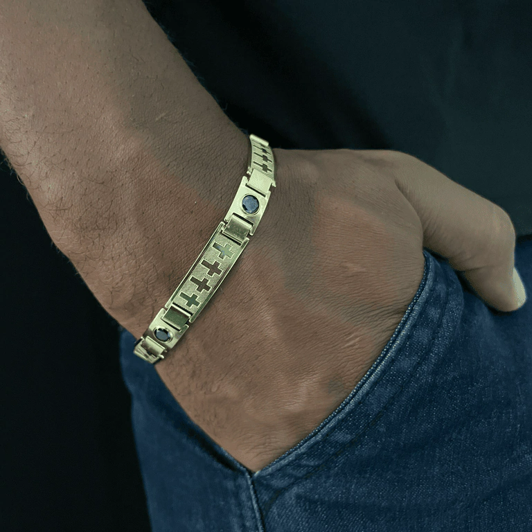 Bracelete cruz c/ pedra preta 10mm de moeda antiga