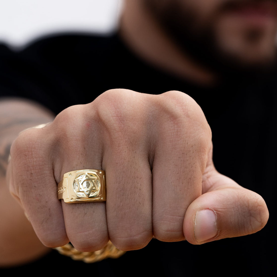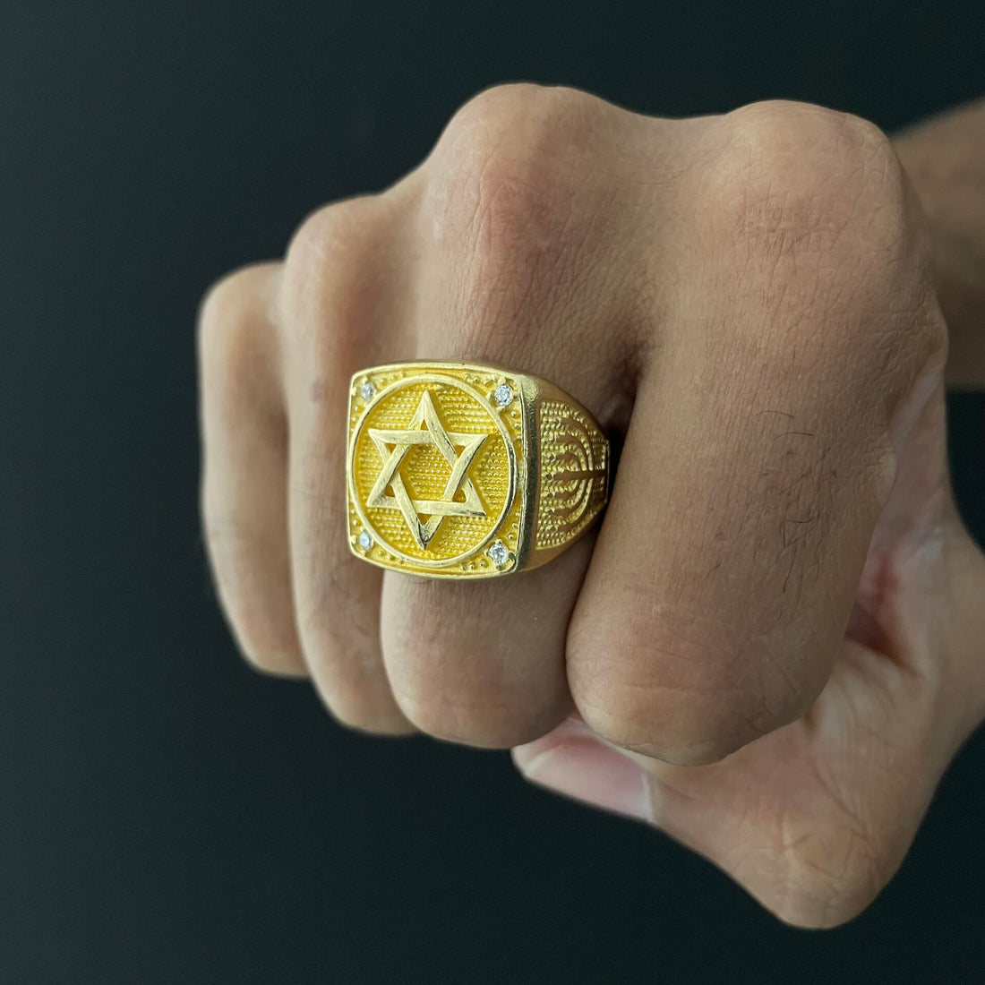 Anel Estrela de Davi Quadrado Moeda Antiga