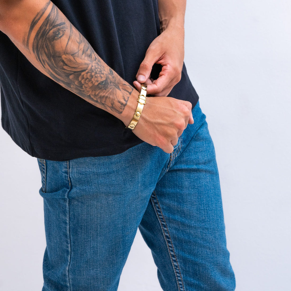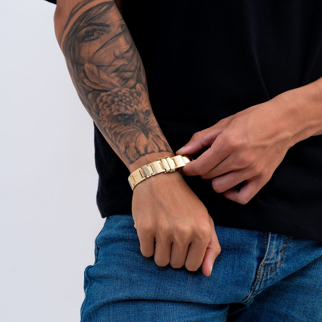 Bracelete Intercalado Liso 16mm de Moeda Antiga