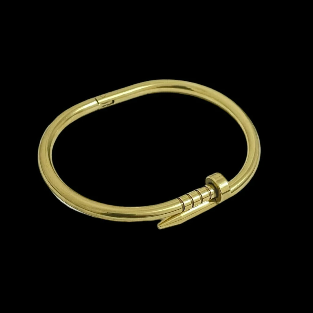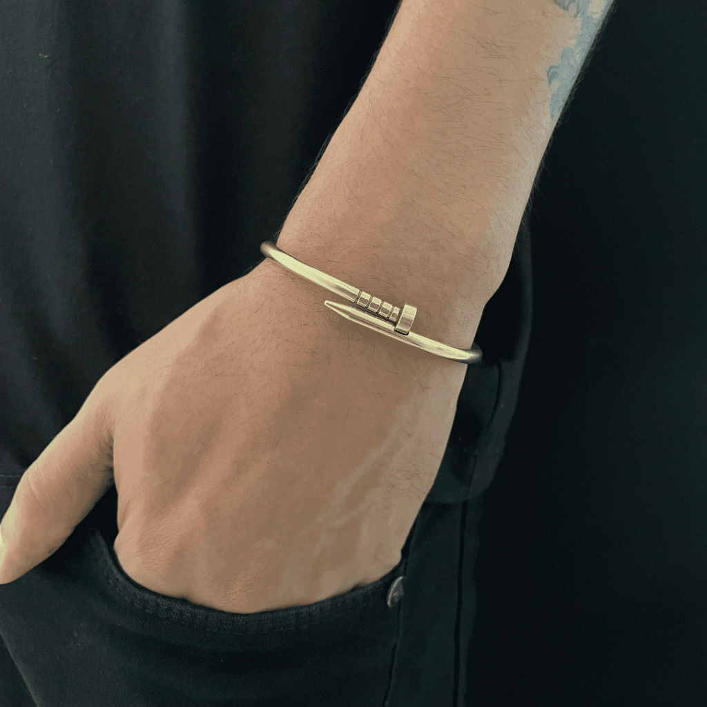 Especificações: Bracelete Prego unissex 4mm de moeda antiga, c/ 21 gramas, Fecho com 1 trava de segurança, com 750 Gravado no fecho.