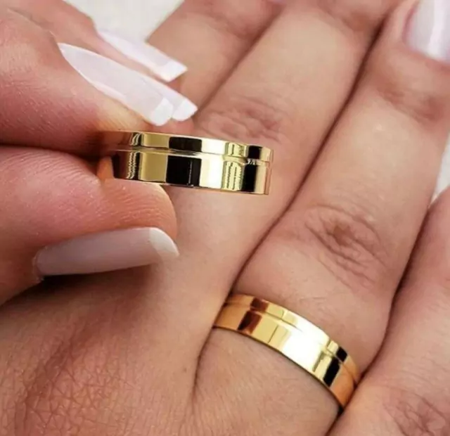 Especificações: Par de aliança 6mm reta 1 friso de moeda antiga