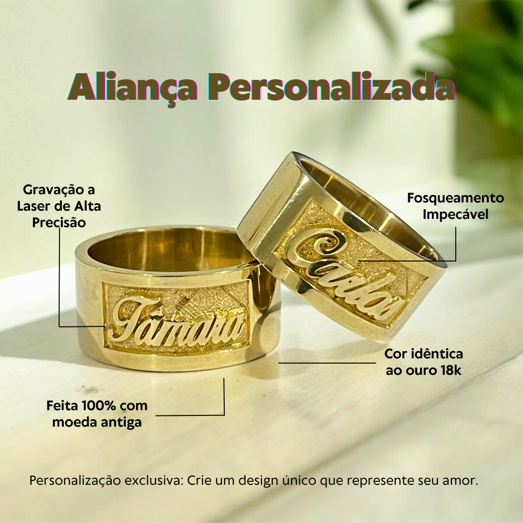 Especificações: Par de Aliança personalizada 10mm, personalize como quiser.